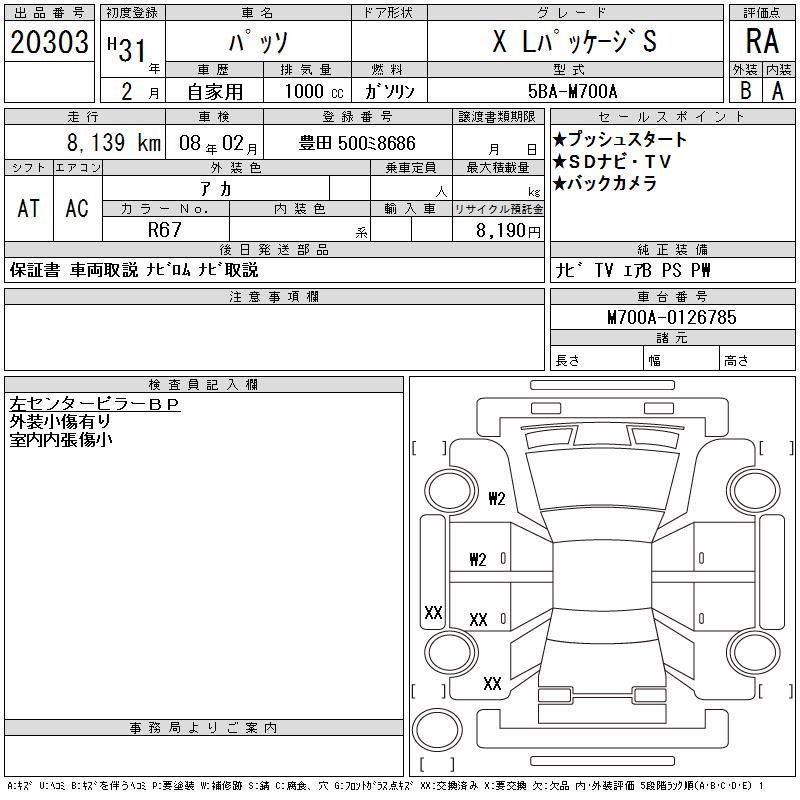 TOYOTA PASSO X L PACKAGE S - лот 20303