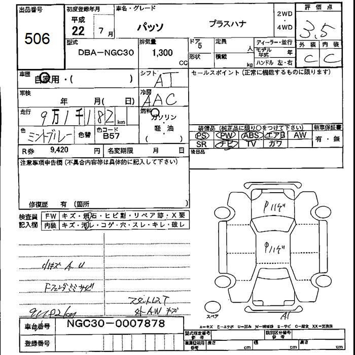 TOYOTA PASSO +Hana - лот 506