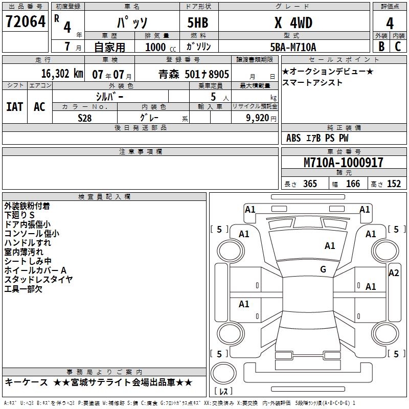 TOYOTA PASSO X 4WD - лот 72064