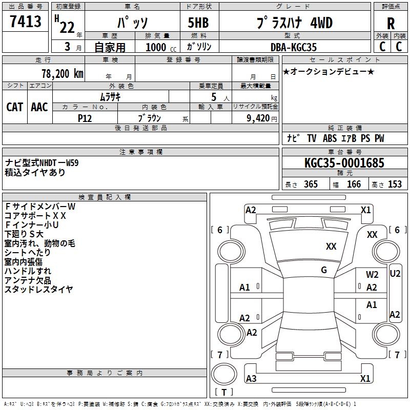 TOYOTA PASSO +HANA 4WD - лот 7413