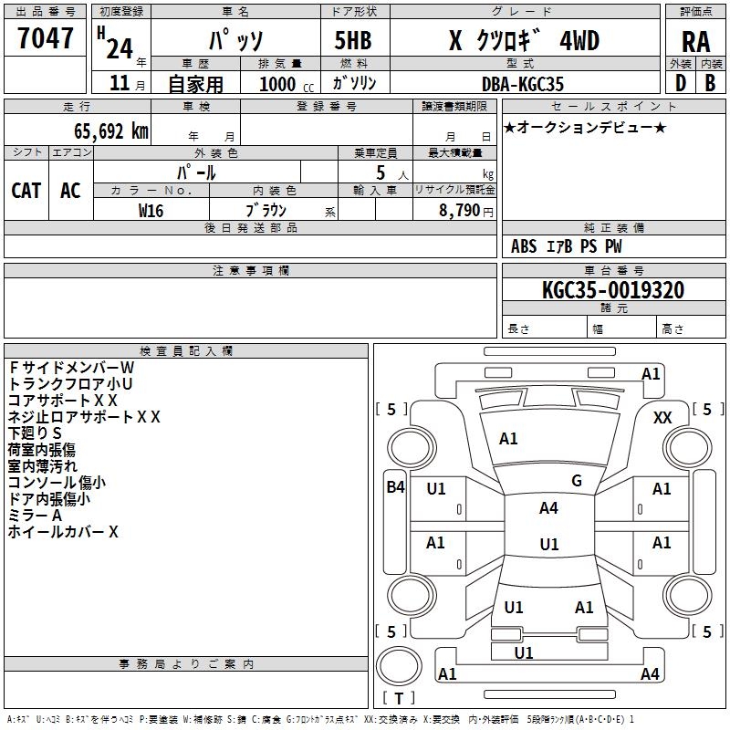TOYOTA PASSO XKTSUROGI4WD - лот 7047