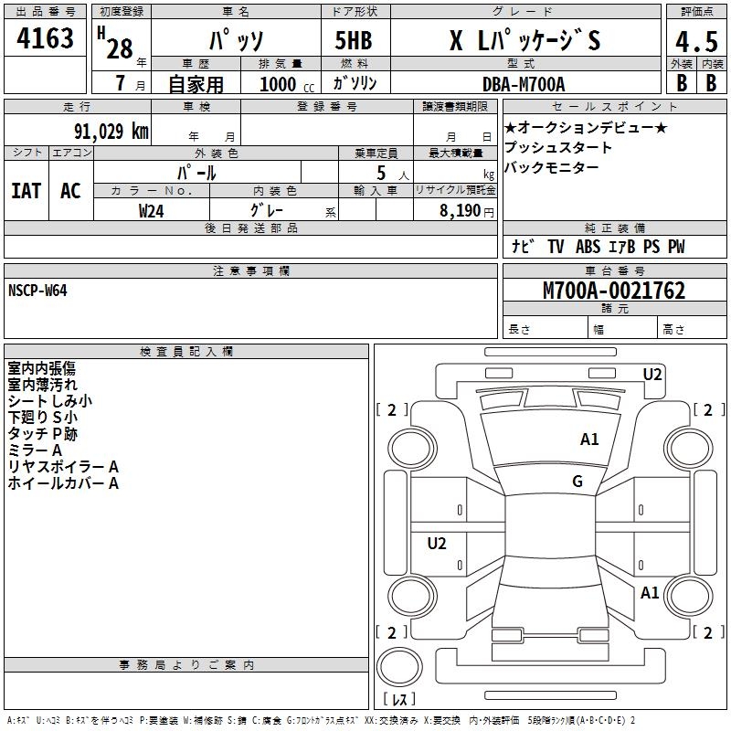 TOYOTA PASSO X L PACKAGE S - лот 4163