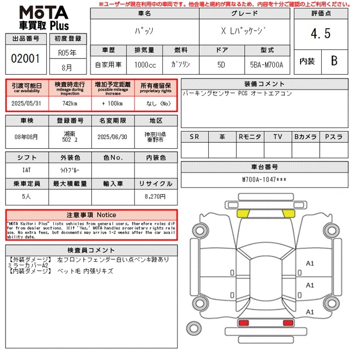TOYOTA PASSO X L PACKAGE - лот 2001