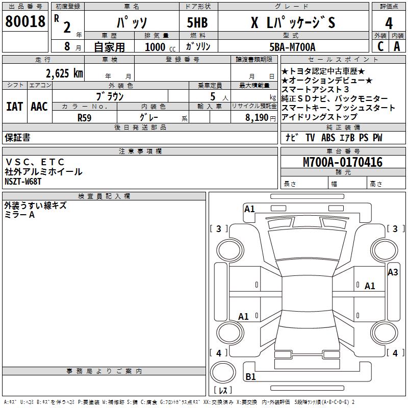 TOYOTA PASSO X L PACKAGE S - лот 80018
