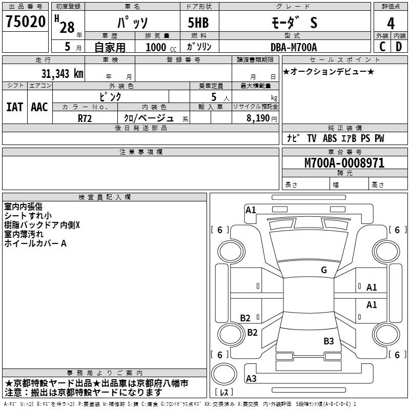 TOYOTA PASSO MO-DAS - лот 75020