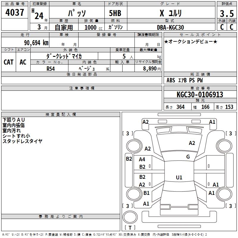 TOYOTA PASSO X YURURI - лот 4037