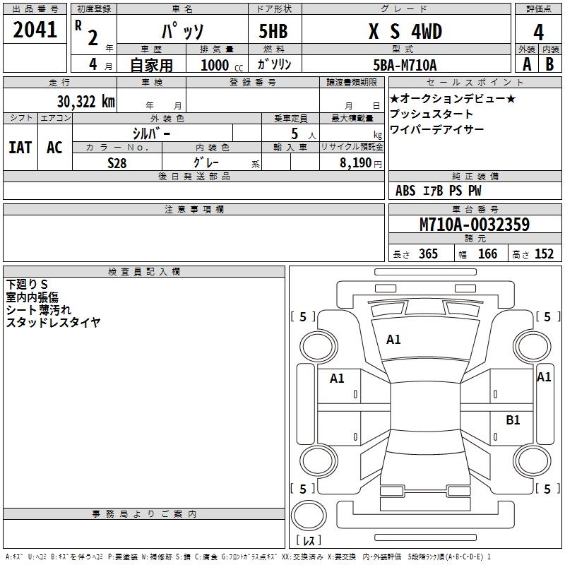 TOYOTA PASSO X S 4WD - лот 2041