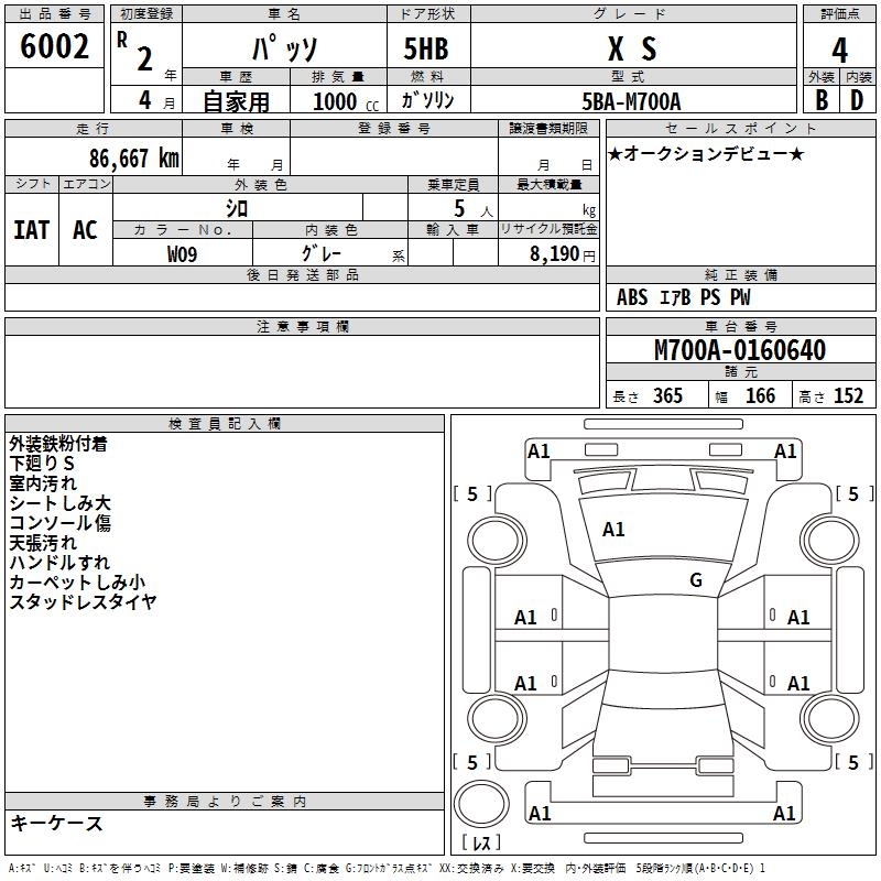 TOYOTA PASSO X S - лот 6002