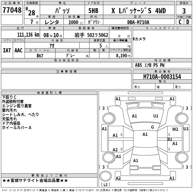 TOYOTA PASSO X L PACKAGE S 4WD - лот 77048