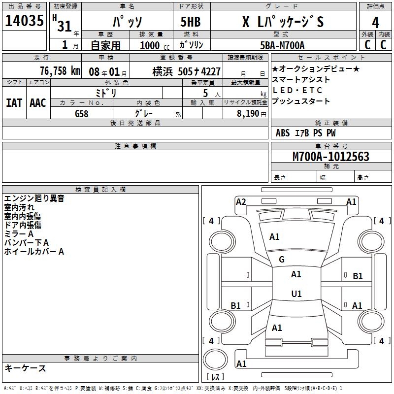 TOYOTA PASSO X L PACKAGE S - лот 14035
