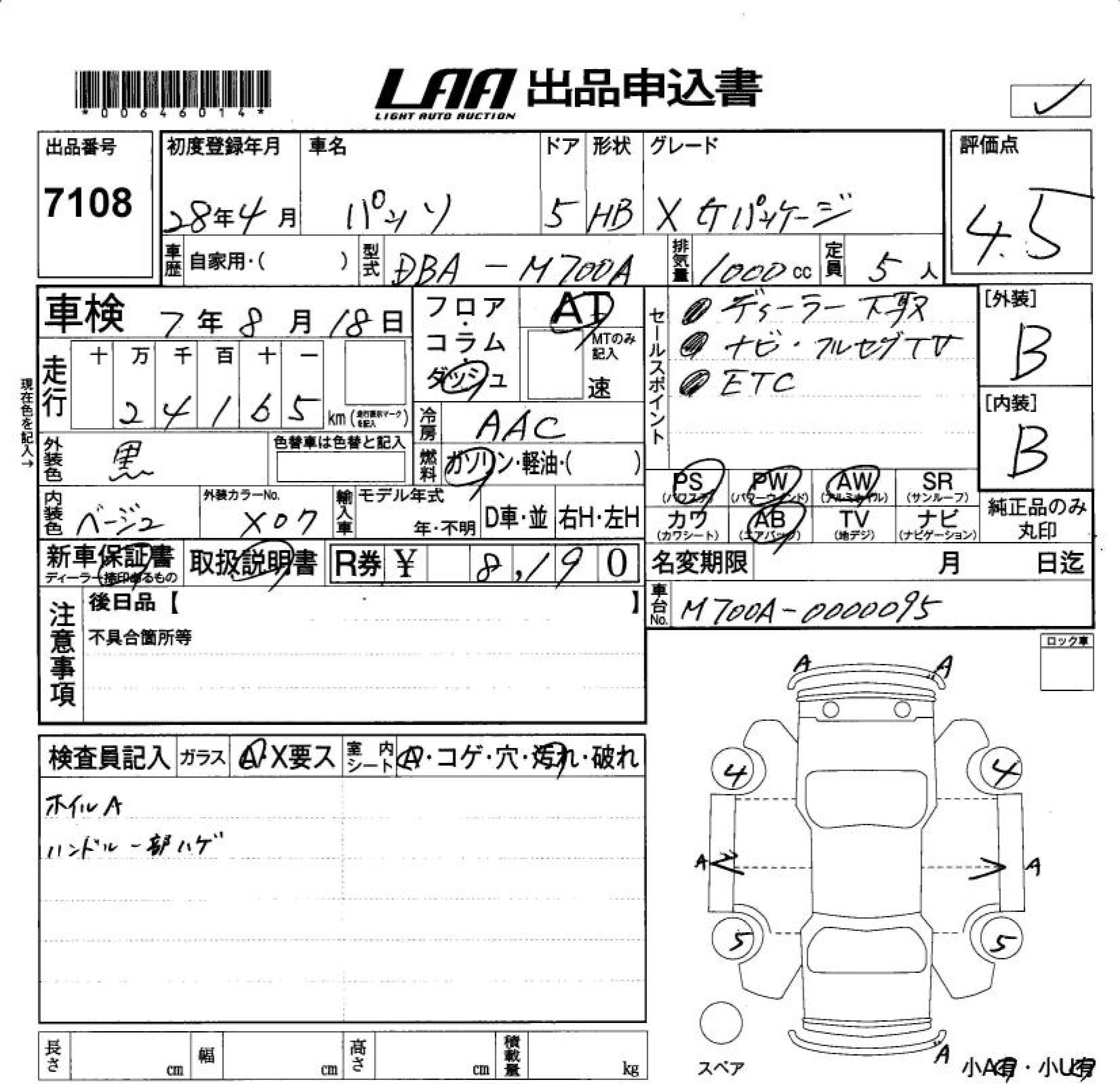 TOYOTA PASSO X G PACKAGE - лот 7108