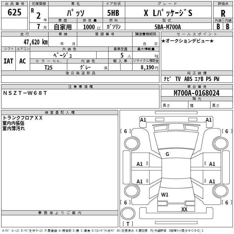 TOYOTA PASSO X L PACKAGE S - лот 625
