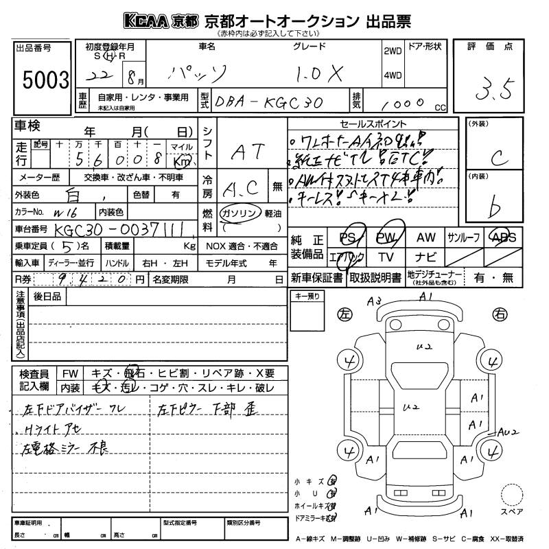 TOYOTA PASSO 1.0X - лот 5003