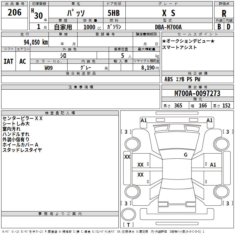 TOYOTA PASSO X S - лот 206