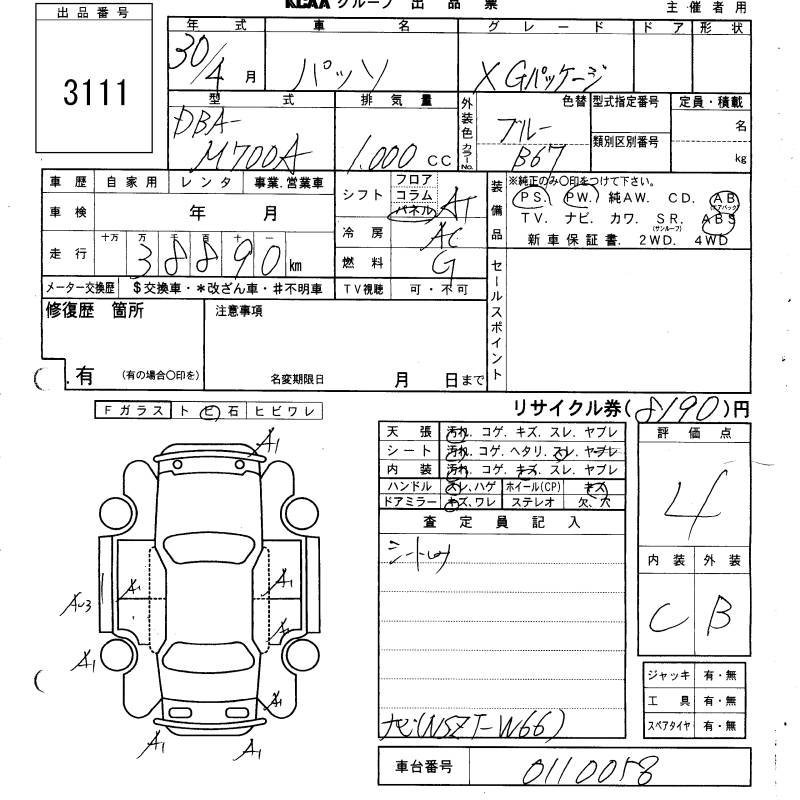 TOYOTA PASSO X G PACKAGE - лот 3111