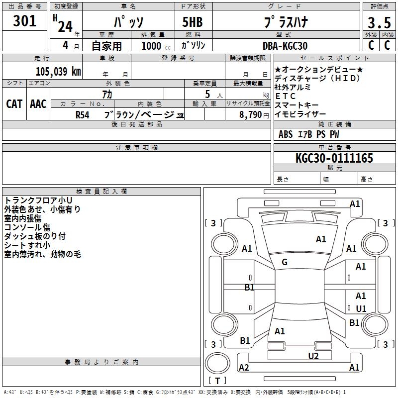 TOYOTA PASSO +HANA - лот 301