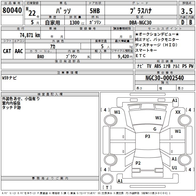 TOYOTA PASSO +HANA - лот 80040