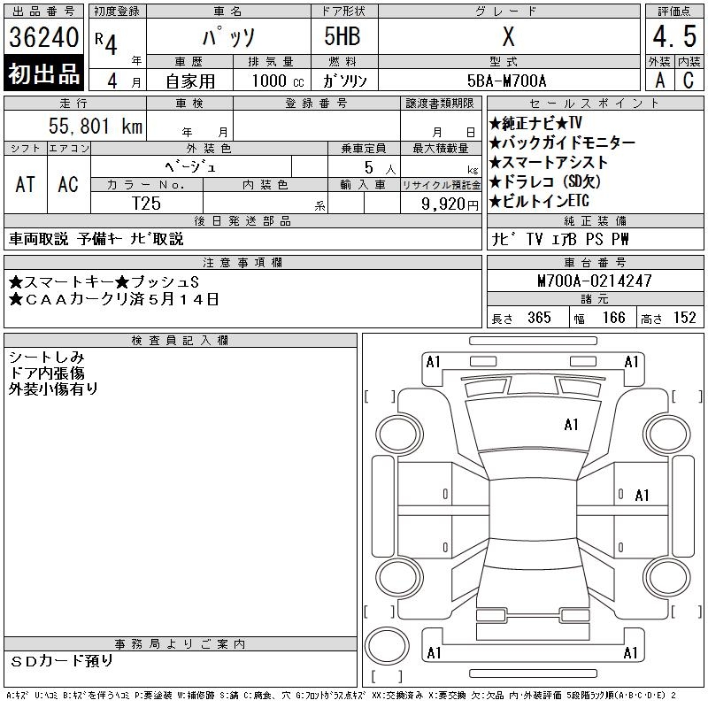 TOYOTA PASSO X - лот 36240