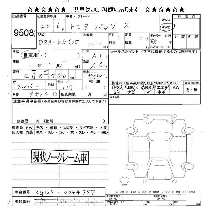TOYOTA PASSO 4WD X - лот 9508