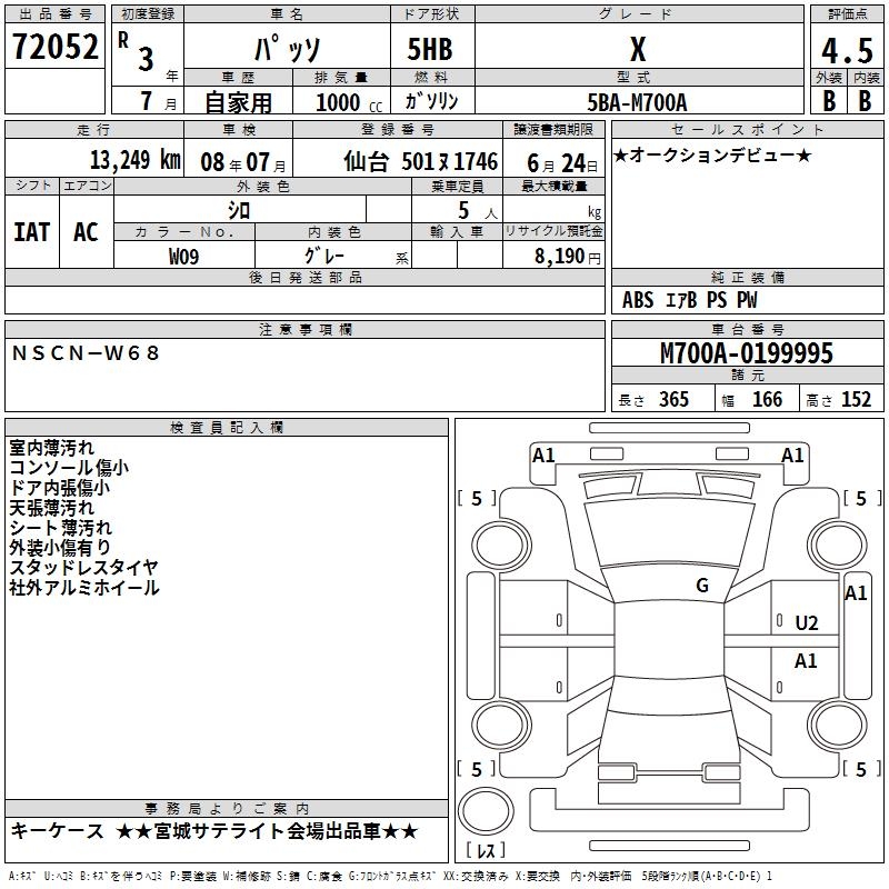 TOYOTA PASSO X - лот 72052