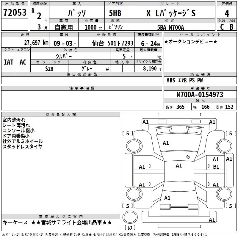 TOYOTA PASSO X L PACKAGE S - лот 72053
