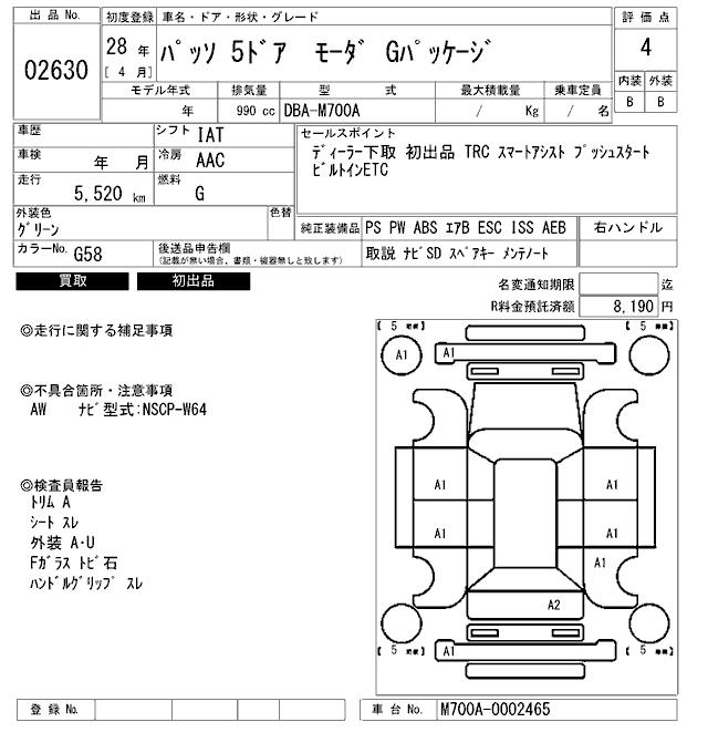 TOYOTA PASSO MO-DAG PACKAGE - лот 2630