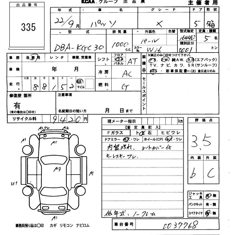 TOYOTA PASSO X - лот 335