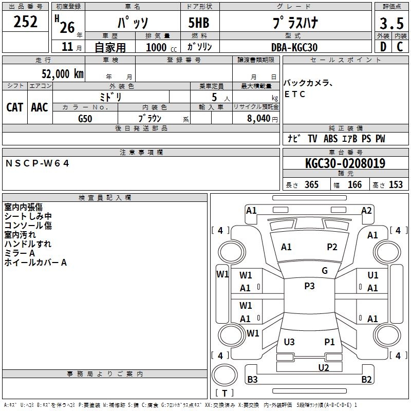 TOYOTA PASSO +HANA - лот 252