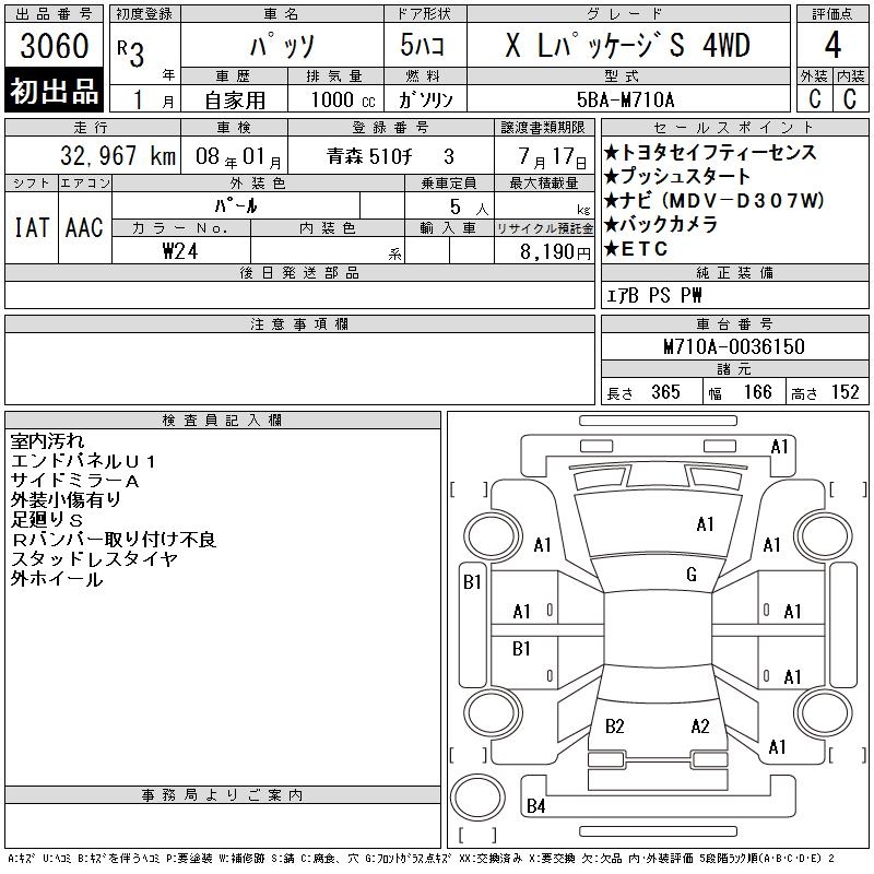TOYOTA PASSO X L PACKAGE S 4WD - лот 3060
