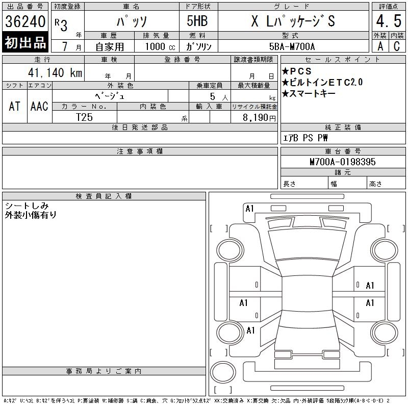 TOYOTA PASSO X L PACKAGE S - лот 36240