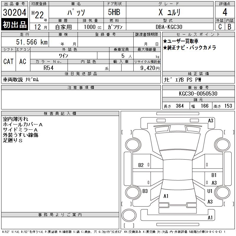 TOYOTA PASSO X YURURI - лот 30204