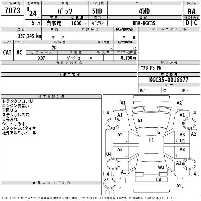 TOYOTA PASSO 4WD - лот 7073
