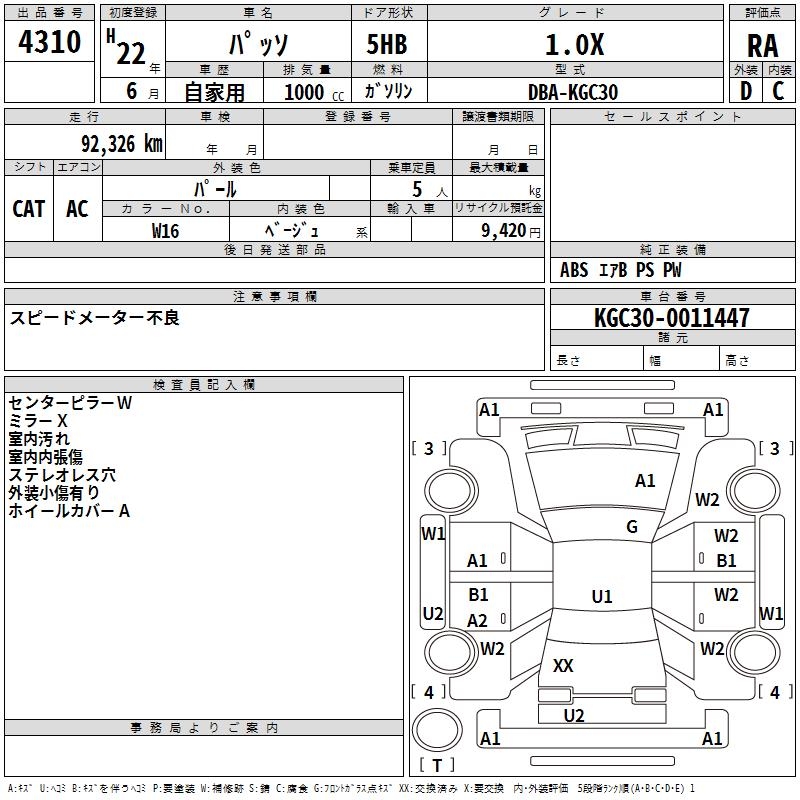 TOYOTA PASSO 1.0X - лот 4310