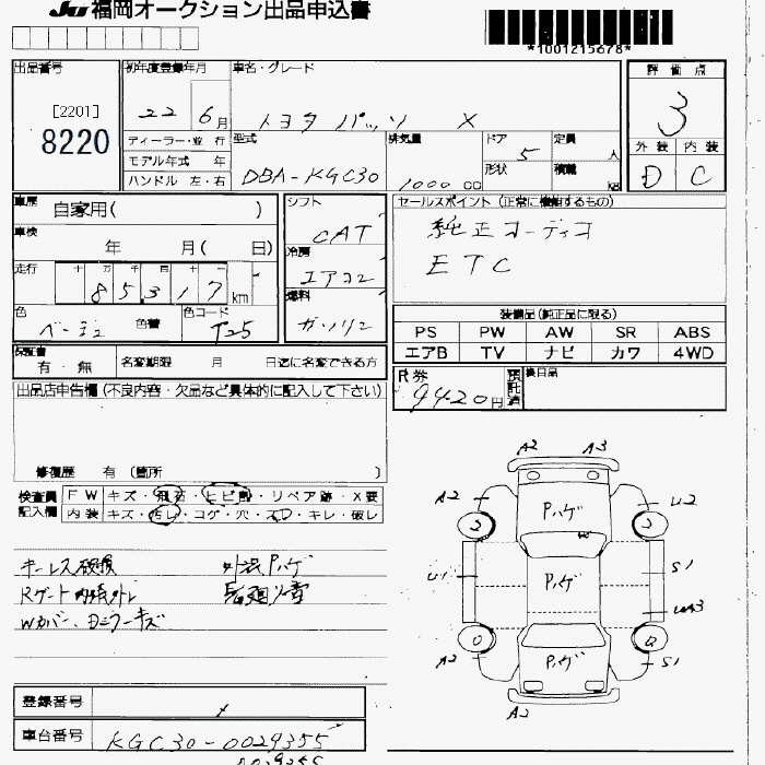 TOYOTA PASSO X - лот 8220