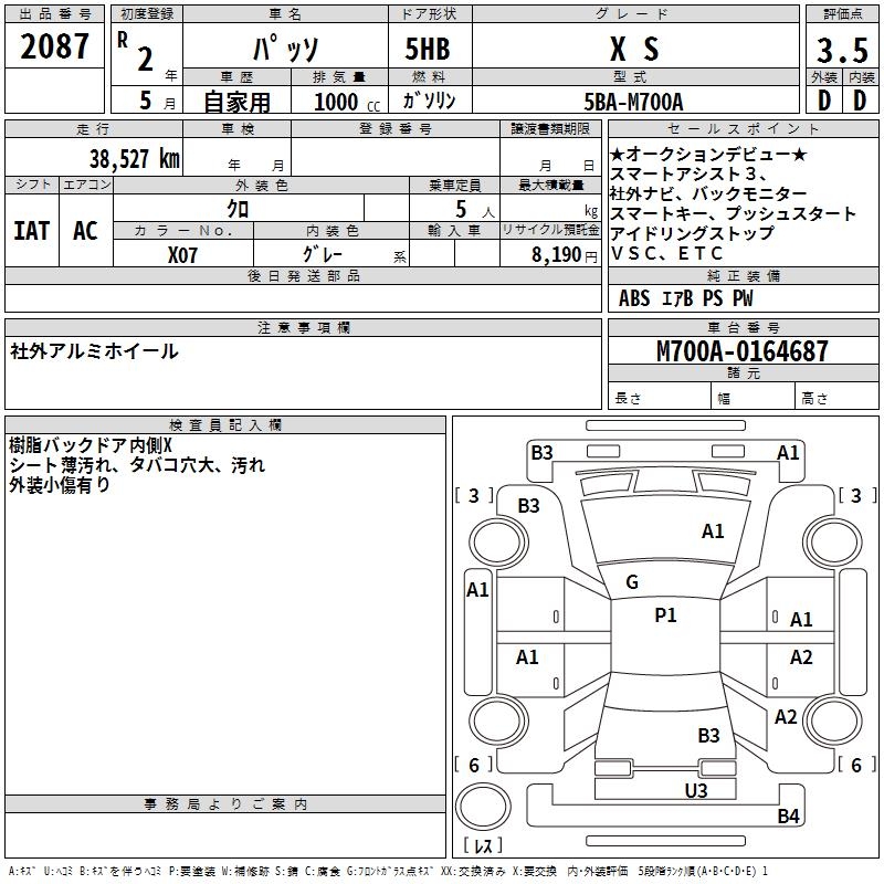 TOYOTA PASSO X S - лот 2087