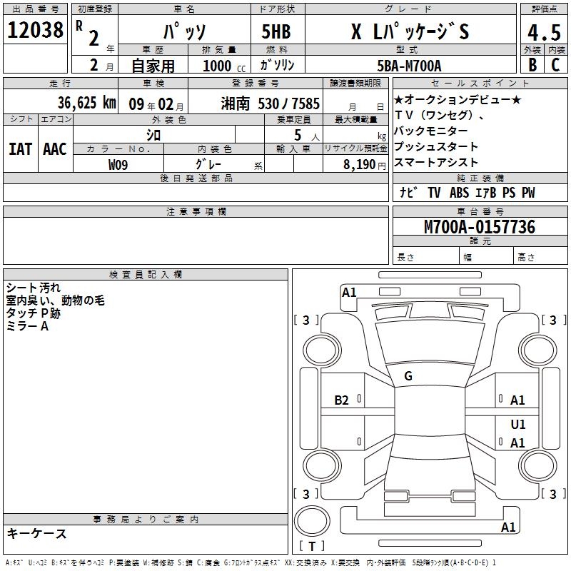 TOYOTA PASSO X L PACKAGE S - лот 12038