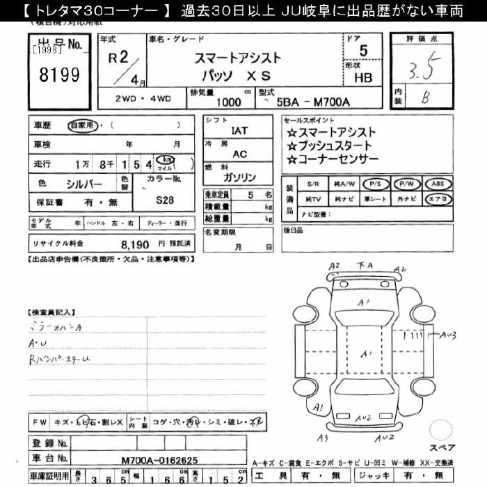 TOYOTA PASSO X S SMART ASSIST - лот 8199
