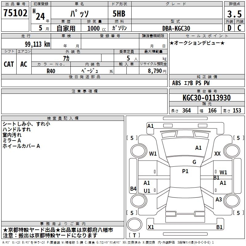 TOYOTA PASSO - лот 75102