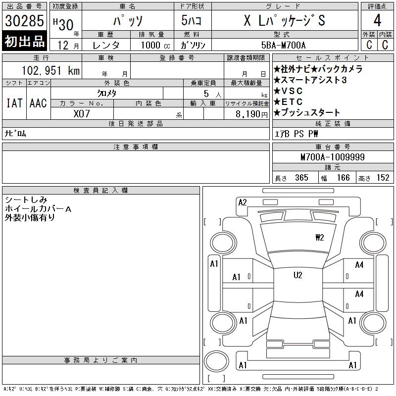 TOYOTA PASSO X L PACKAGE S - лот 30285