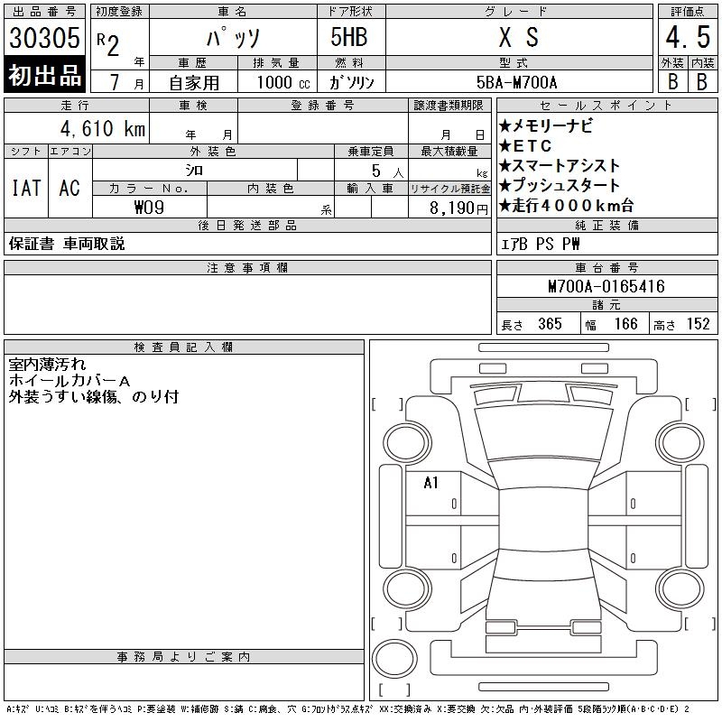 TOYOTA PASSO X S - лот 30305