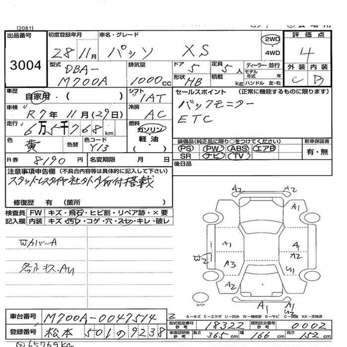 TOYOTA PASSO X S - лот 3004