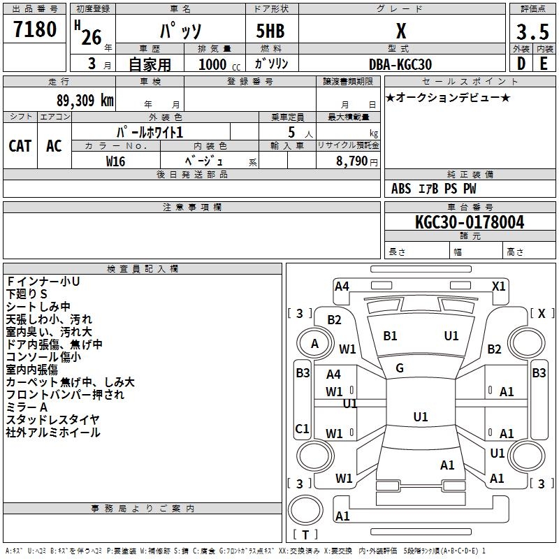TOYOTA PASSO X - лот 7180