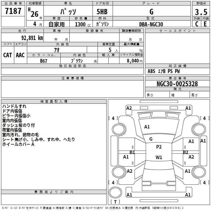TOYOTA PASSO G - лот 7187
