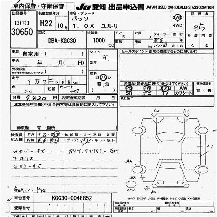 TOYOTA PASSO 1.0X YURURI - лот 30650