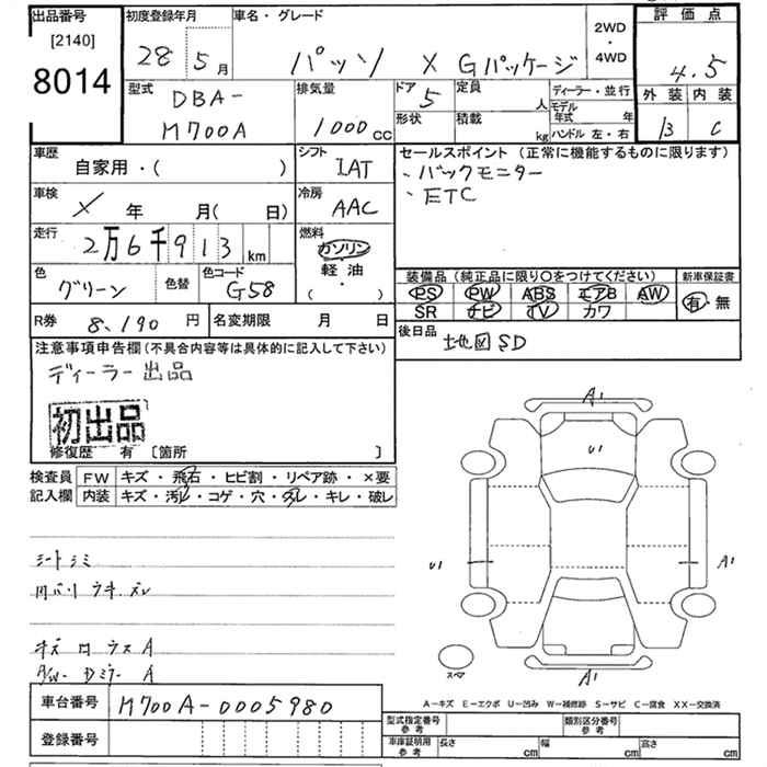 TOYOTA PASSO X G PACKAGE - лот 8014