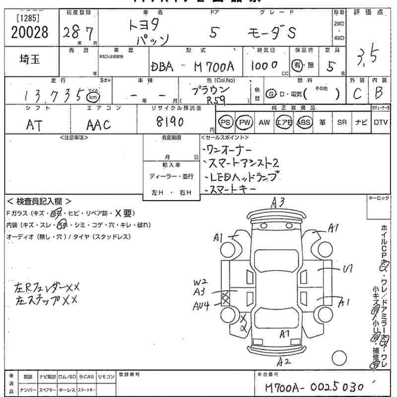 TOYOTA PASSO MO-DAS - лот 20028