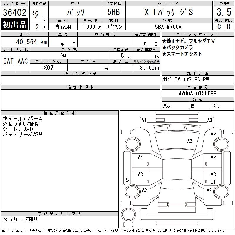 TOYOTA PASSO X L PACKAGE S - лот 36402