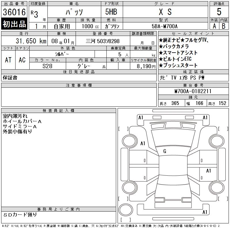 TOYOTA PASSO X S - лот 36016