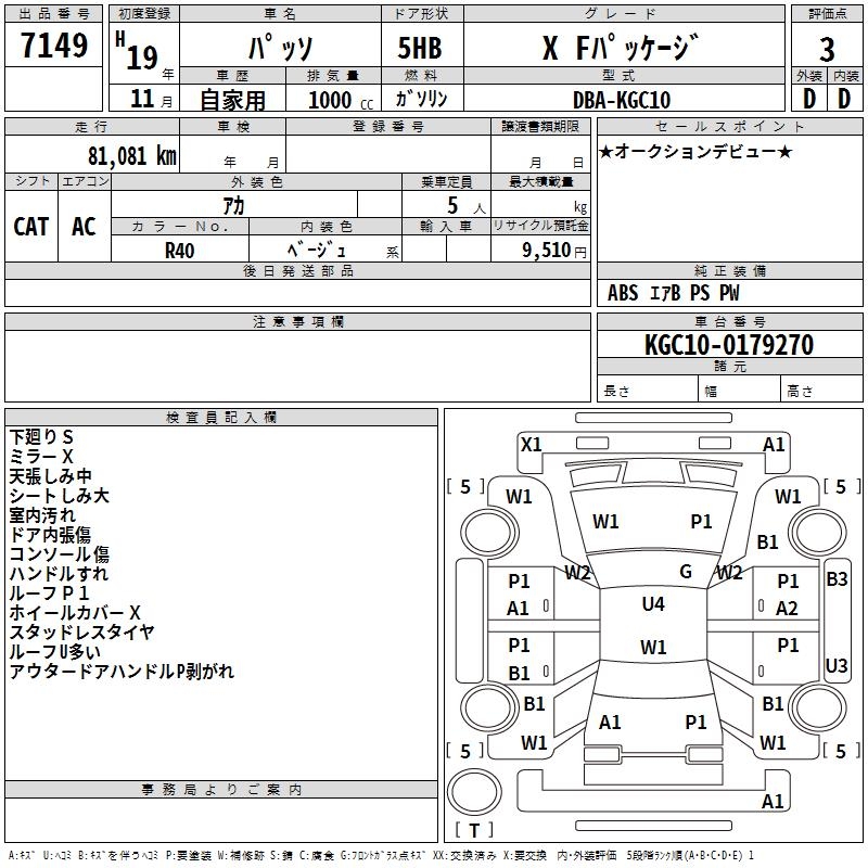 TOYOTA PASSO X F PACKAGE - лот 7149