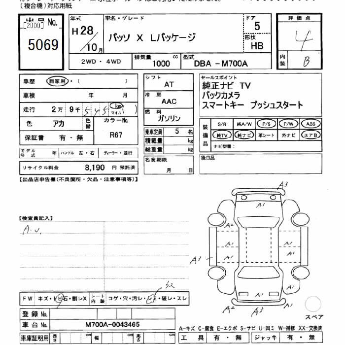 TOYOTA PASSO X L-PKG - лот 5069